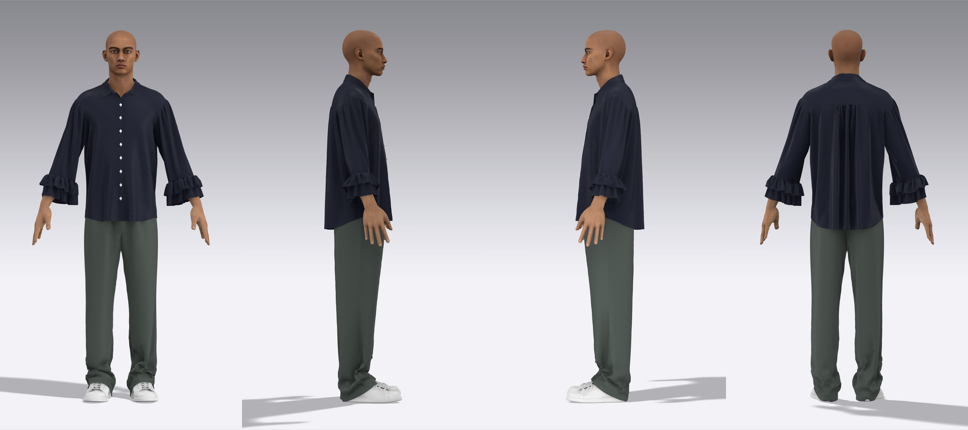 Custom all kinds of clothes. We can do the 3D models for you. When you agree, we can start to do the clothes you want. We can do the clothes according to the requests you want. please feel free to contact me. Add me Teams: 2443078495@qq.com.